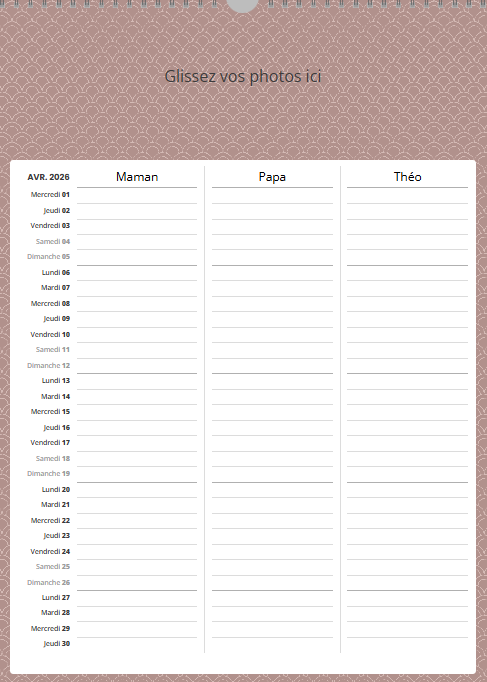 La grille est divisible selon votre famille : chaque personne dispose de sa colonne (2 à 6 selon vos besoins).